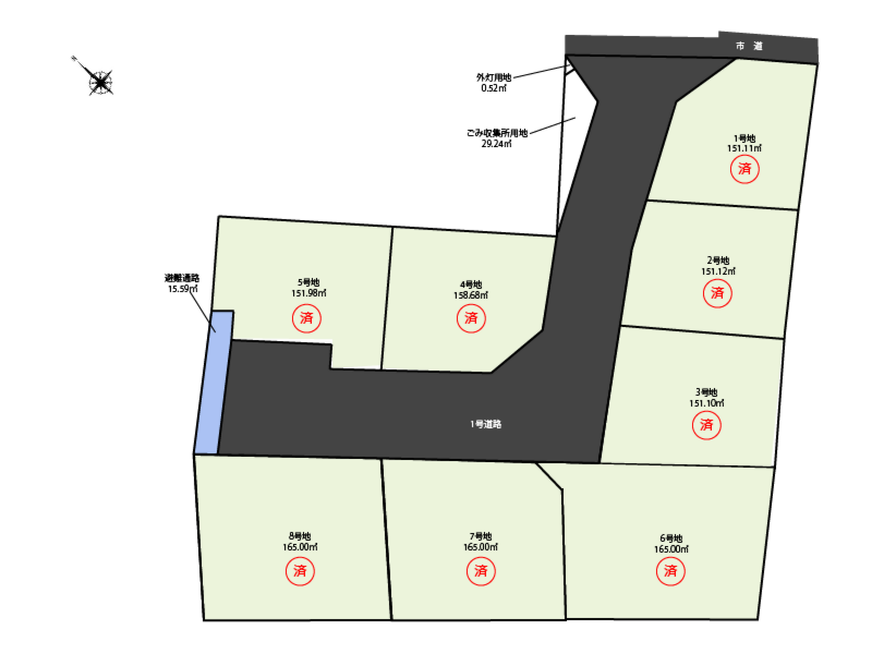 | 8号地 | 165.00 | 50.00 | - | - | 西向き | 済 |